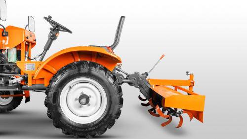 Минитрактор поставляется с комплектом навесного оборудования, которое превращает его в многофункциональную машину.