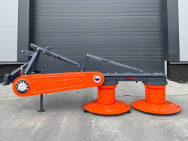 Шестерёнчатый привод роторов гарантирует надёжность и долговечность эксплуатации, а простая конструкция облегчает техническое обслуживание. Перевод косилки из транспортного положения в рабочее осуществляется вручную. Косилка поставляется в комплекте с карданным валом и полностью готова к работе.